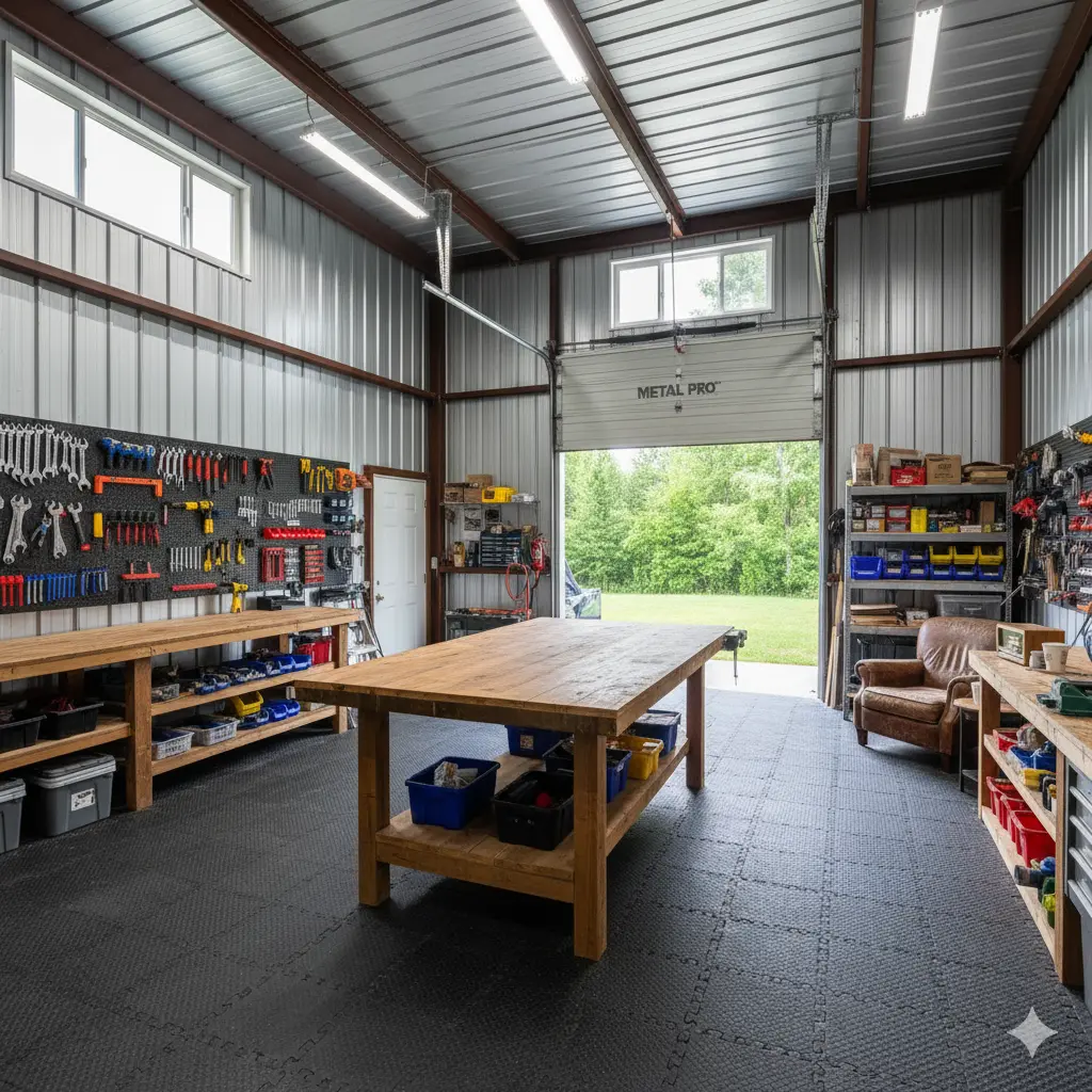 A steel workshop man cave is the perfect fit for anyone who enjoys woodworking, mechanics, or hands-on DIY projects. It gives you a dedicated place to work without taking over your garage or indoor space.