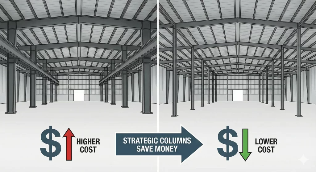 Choosing a multi-span design remains the most effective way to lower your upfront costs. By using interior columns to share the load, you can often reduce the total steel weight. This can save you 10% to 25% on the structural kit compared to a wide-open clear span of the same size. For a 20,000-square-foot facility, those savings can easily reach six figures.