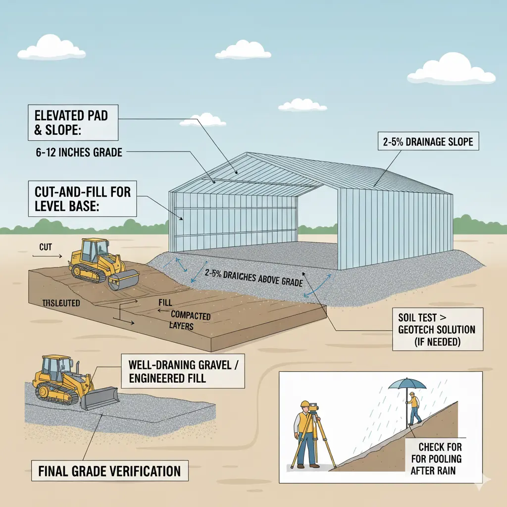 This article gives clear, actionable steps for grading and drainage on steel building sites.